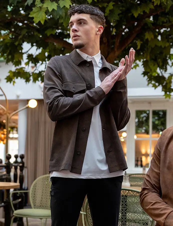 Dit overshirt combineert tijdloze elegantie met modern comfort en heeft een suede look. Vervaardigd uit een hoogwaardige techno jersey, sluiten deze overshirts naadloos aan op het lichaam met een verfijnde pasvorm en uitzonderlijk draaggemak. Een perfecte keuze voor elk seizoen. Stijlvol, comfortabel en moeiteloos veelzijdig.